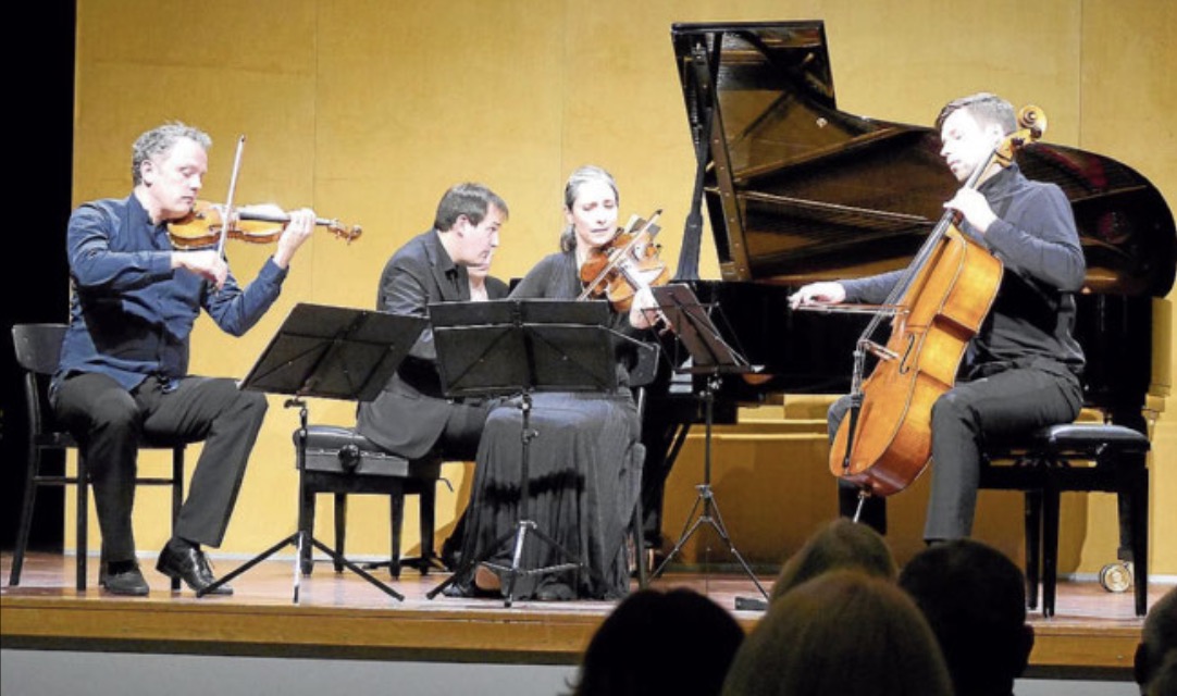 Nach der etwas exotischen Besetzung mit Viola da Gamba und Akkordeon beim ersten „Klassischen Konzert“ der neuen Saison war in dieser Woche nun mit einem Klavierquartett wieder eine etwas vertrautere Instrumentenkombination am Start. Seit 2009 sind Philipp Bohnen (Violine), Barbara Buntrock (Viola), Peter-Philipp Staemmler (Violoncello) und Gerhard Vielhaber (Klavier) als „Mariani Quartett“ unterwegs.